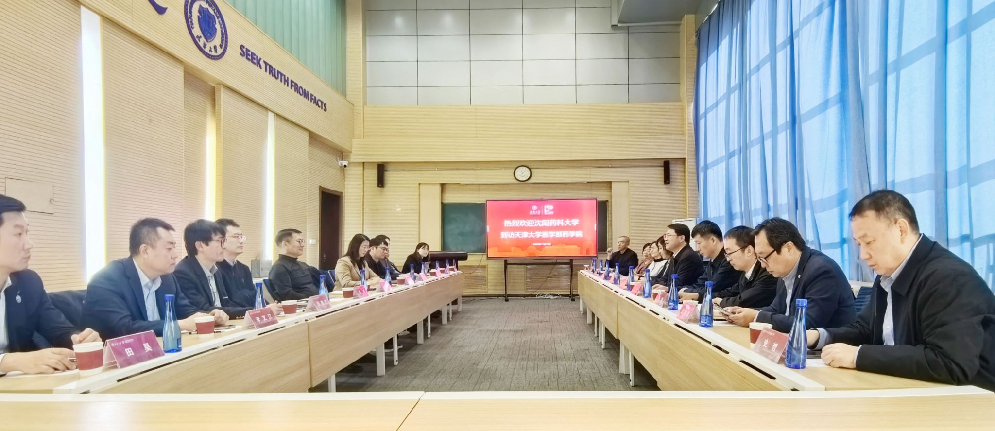 为深化校际合作,共促学科发展,11月16日,校党委书记高明宇,党委常委、副校长翟鑫一行赴天津大学调研交流,天津大学副校长明东出席调研交流会,双方围绕药学学科建设、人才培养模式、科学研究创新、实验室管理等方面进行深入探讨。北京校友会会长赵艳萍、天津校友会会长沈载宽、深圳校友会会长史哲、无涯杂志主编霍炬及部分在津校友参加座谈。会议由天津大学医学部药学院党委书记吴晶主持。