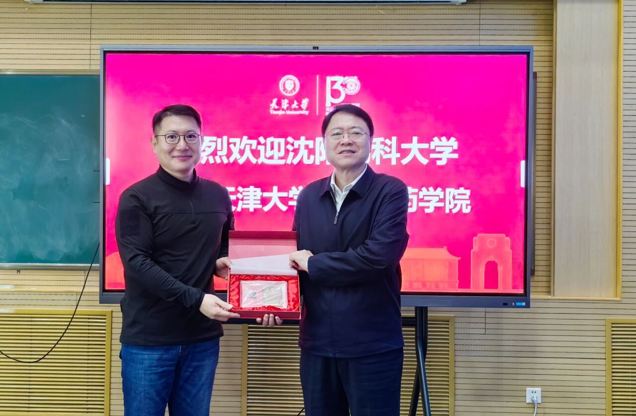 高明宇代表学校对天津大学的热情接待表示感谢。他高度赞扬了天津大学自建校以来,始终坚守育人初心、勇攀科研高峰,在精密仪器、化学化工、生物医学工程、药学等多个领域积淀深厚、成果卓著,为国家培养了大批杰出人才,并介绍了我校红色办学历程、药学学科特色优势和近年来在人才培养、科学研究、社会服务等方面的发展成果。他指出,天津大学的“工科之强”与沈药的“药学之专”高度契合、优势互补,在学科交叉融合、科研协同创新、人才联合培养等方面拥有广阔的合作空间。他希望,以此次调研为契机,将沈药的药学学科优势、行业资源与天津大学卓越的工科实力、前沿的科研布局深度融合,打造校际合作新标杆。
