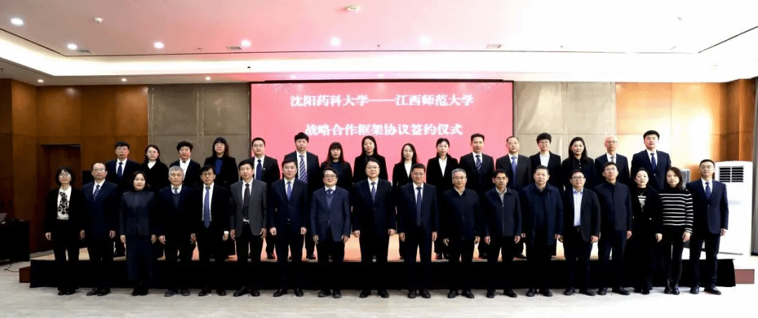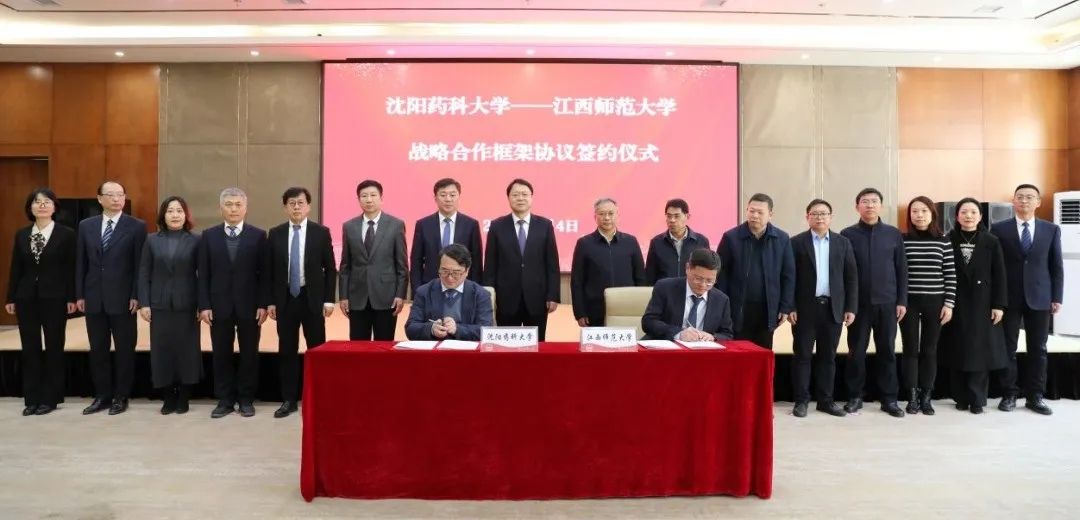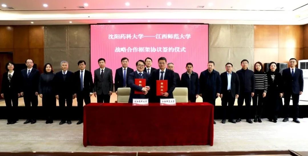 1月4日,沈阳药科大学与江西师范大学战略合作框架协议签约仪式在南校区国际交流中心报告厅成功举行。中国工程院院士、江西师范大学校长陈芬儿,党委常委、副校长周利生,党委常委、副校长刘利民,我校党委书记高明宇,校长程卯生,党委副书记关雪峰,党委常委、副校长李可强,党委常委、副校长宋少江,党委常委、纪委书记、监察专员卢文春,党委常委、副校长翟鑫出席签约仪式。仪式由关雪峰主持。